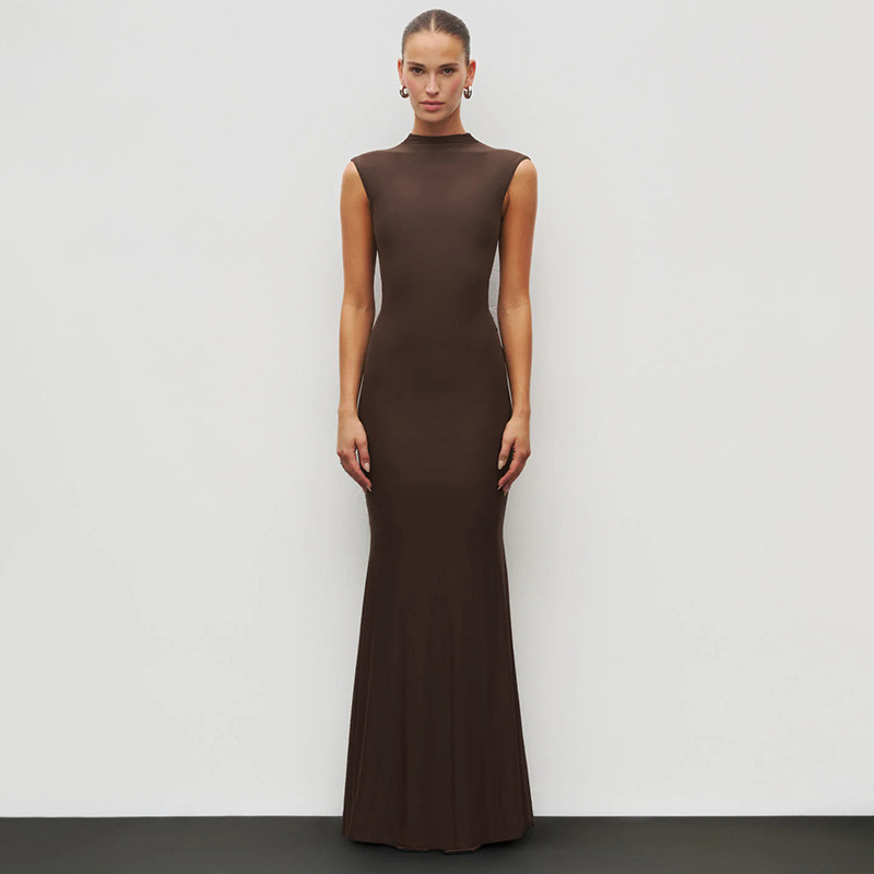 Vestido Largo Sirena Elegante sin Mangas Cuello Alto