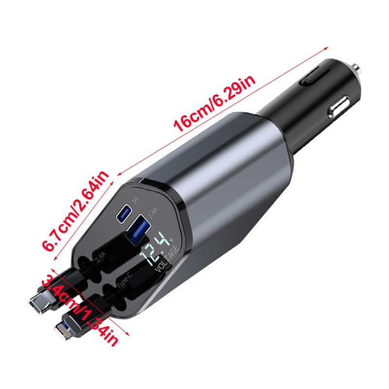 Ese cargador e' brutal, hermano. Carga rápido tu teléfono y otros dispositivos en el carro con ese cable que se recoge solito, y no ocupa ná de espacio. ¡Dale, que vale la pena!