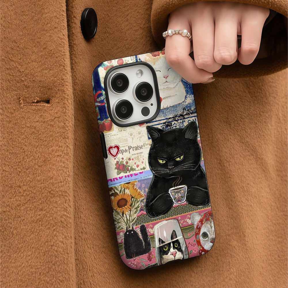 Protege tu celular con estilo, mira qué linda esta funda con su gatito monísimo. Dos capas que defienden bien el teléfono de golpes y rasguños, y además te queda chévere.