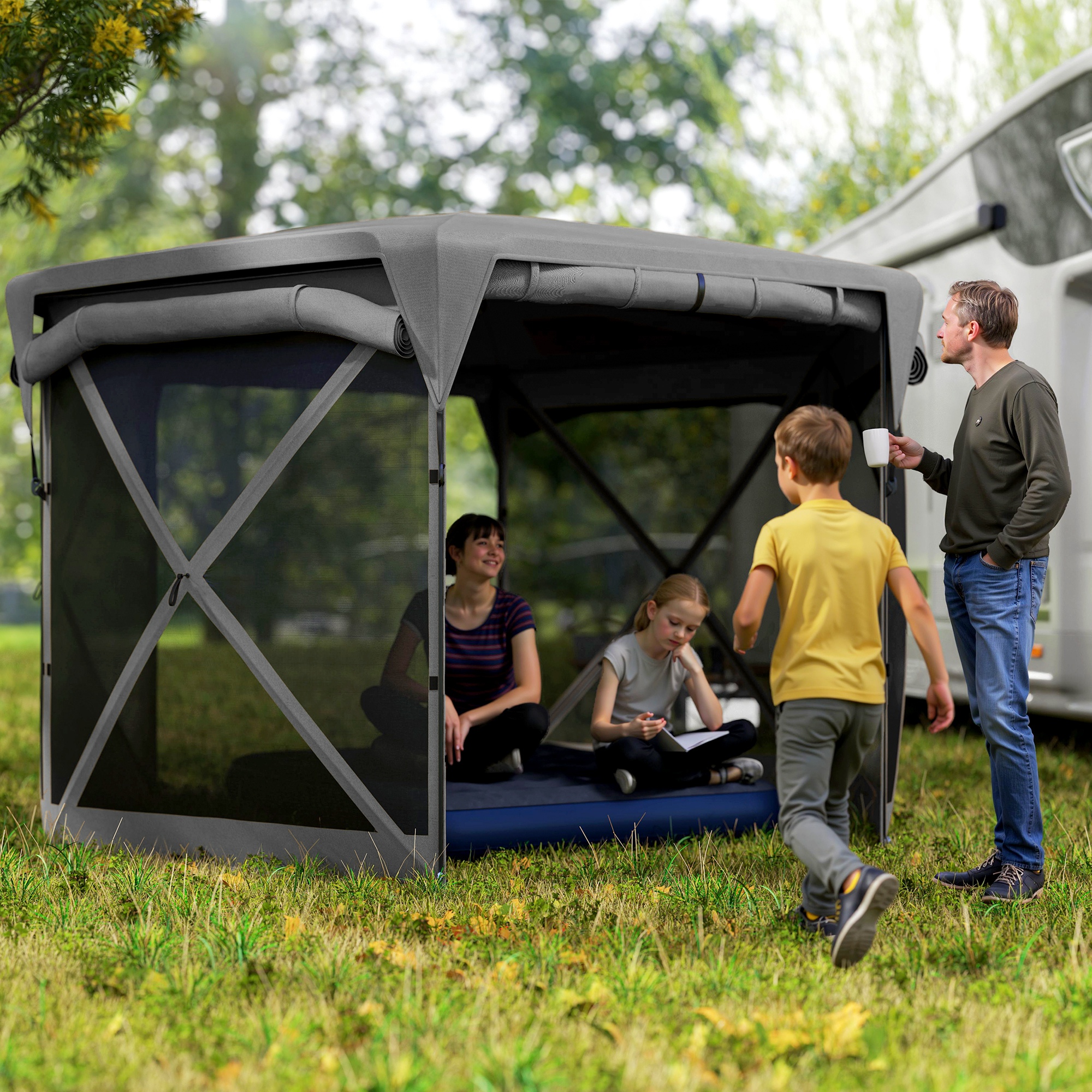 Dale la vuelta a tus reuniones al aire libre con esta carpa tipo gazebo que se arma en un chin. Tiene techo desmontable, paneles laterales que se enrollan pa' que no te moleste el viento, y es perfecta pa' acampar o pa' disfrutar en el patio. ¡Viene en gris oscuro y te va a durar un montón!