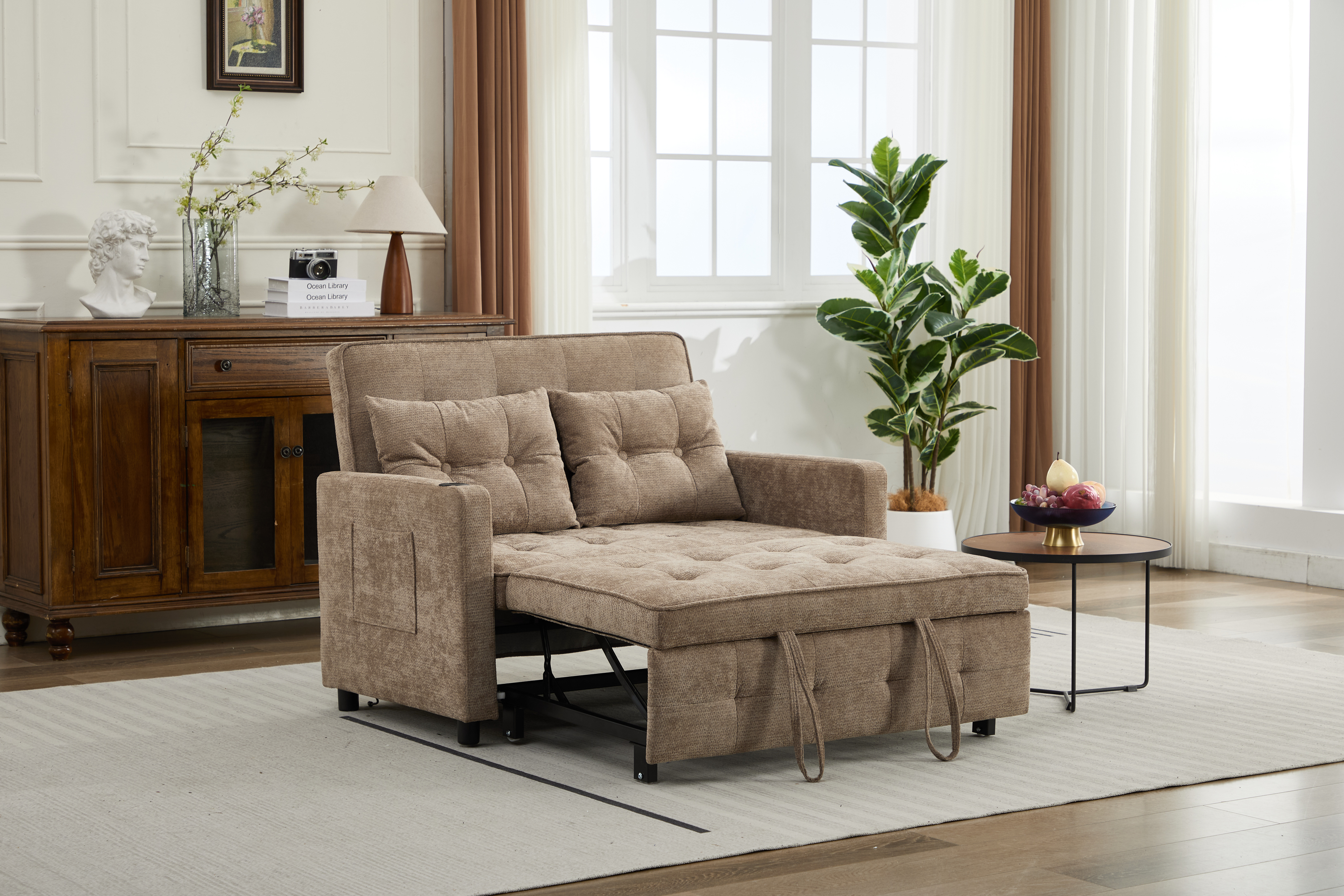 Sillón Convertible 3 en 1 con Cama Plegable, Puertos USB y Bolsillos Laterales