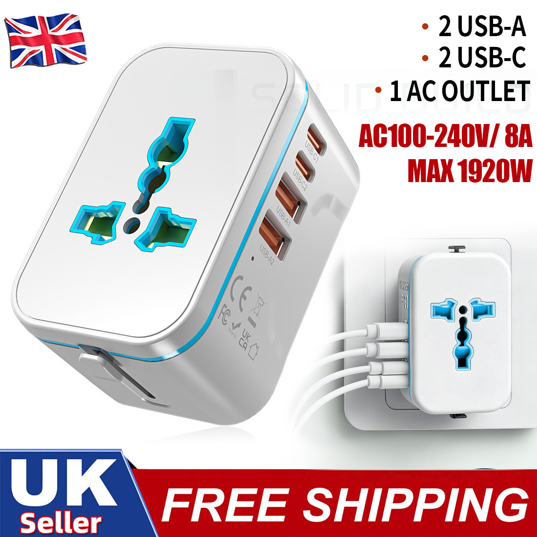 Adaptador Universal de Viaje con Puerto USB-C - UK EU AU US