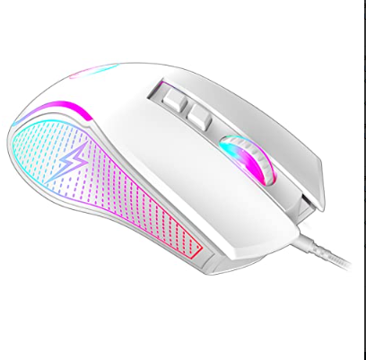 Ratón Gaming Ergonómico con Luz RGB y DPI Ajustable - Blanco