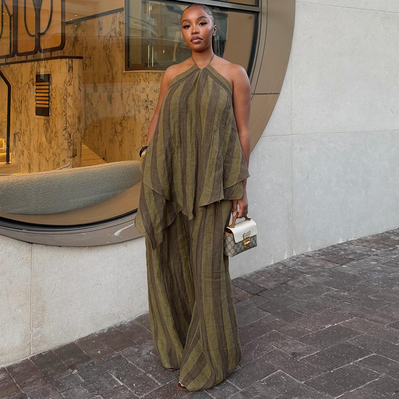 Neck-hanging Sleeveless Asymmetrical Top And Wide-leg Trousers Set
