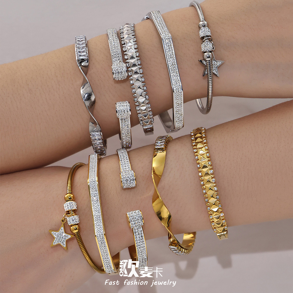 Stainless Steel Ultra-Shiny Full-Crystal Clip Bracelet