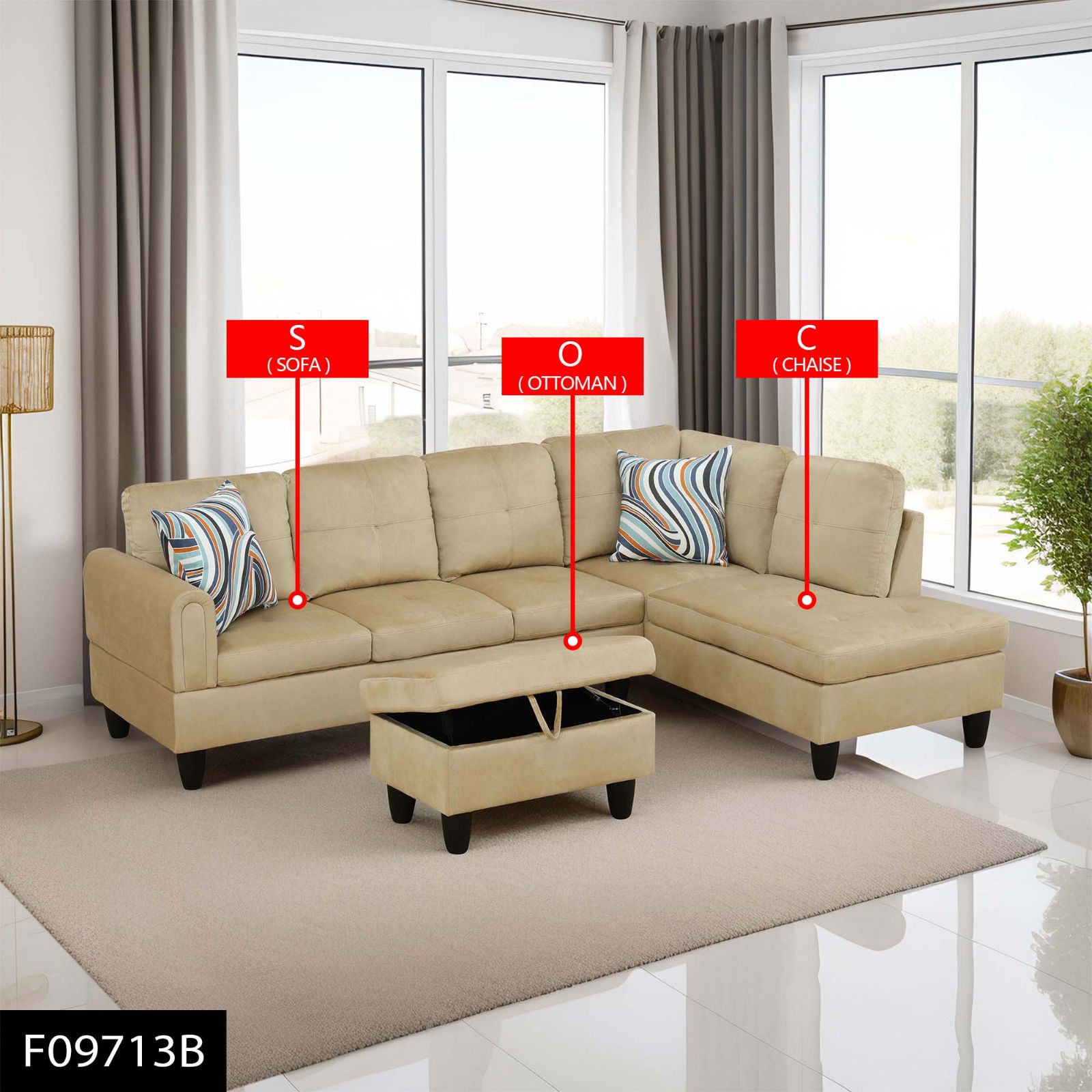 Pickup Only--Beige Flannel 3-Piece Living Room Sofa Set