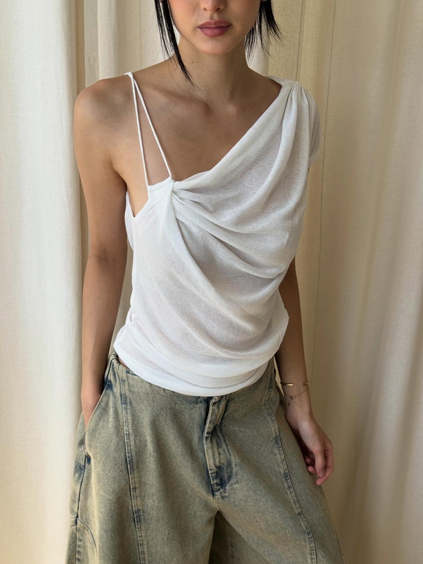 Solid Color Asymmetrical Halter Neckline Backless Cropped Top