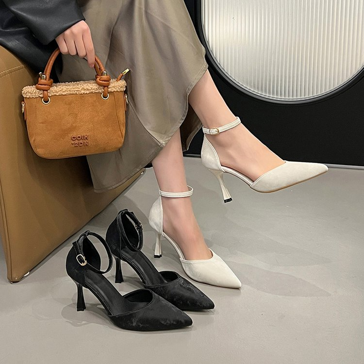 Women's Ankle Strap Pointed Toe Stiletto Heels Elegant Black & White Dress Pumps