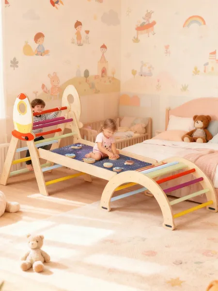 7-In-1 Foldable Baby Climbing Wooden Toys Triangle Set With Arch Triangle Pinball Game And Seesaw Wooden Montessori Climbing Set
