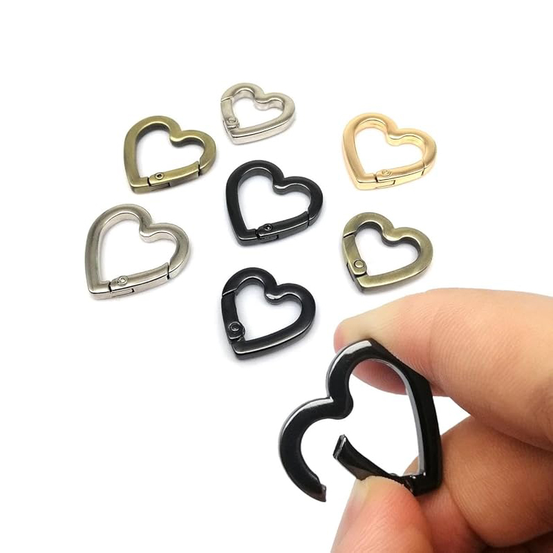 2pcs Spring Gate Heart Shape Ring Open Leather Bag Handbag Belt Strap Buckle Connecter Key Findings Pendant Snap Clip Trigger Hook