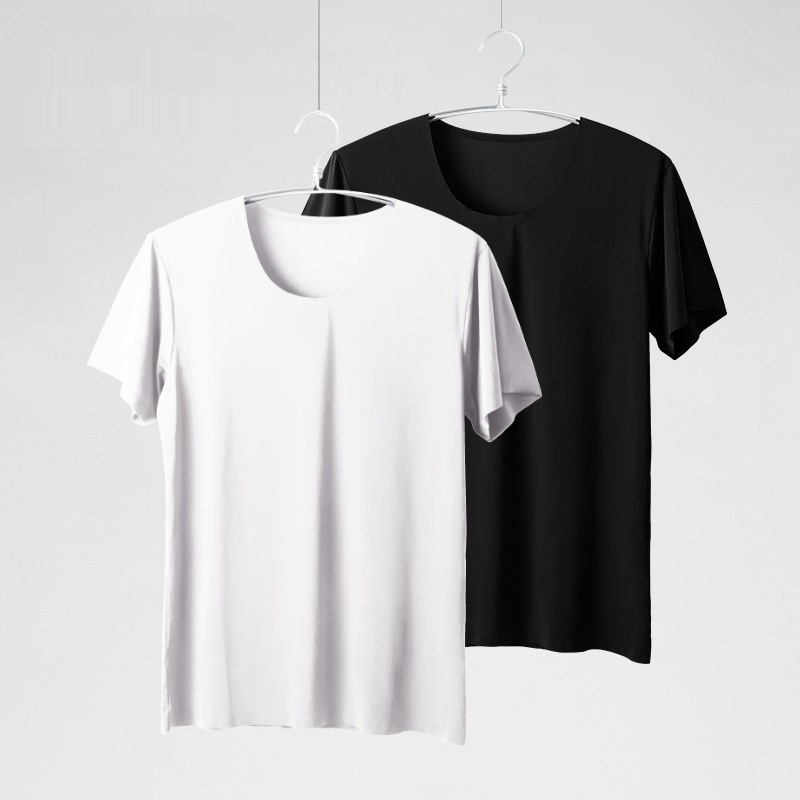 Summer Ice Silk Seamless Mens Short-Sleeve White T-Shirt