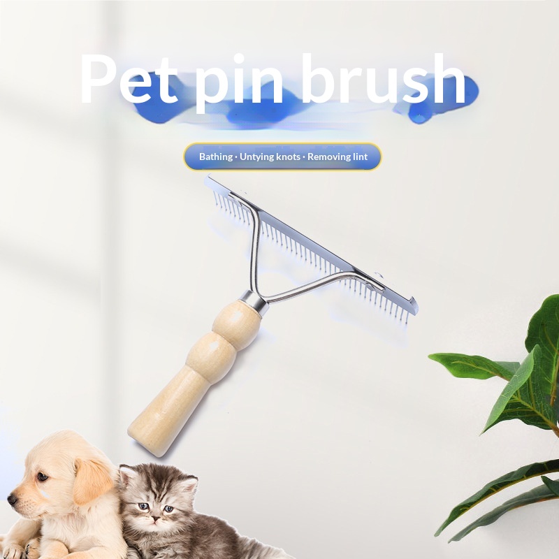 Pet Wooden-Handle Rake Comb For Large And Thick-Coated Dogs