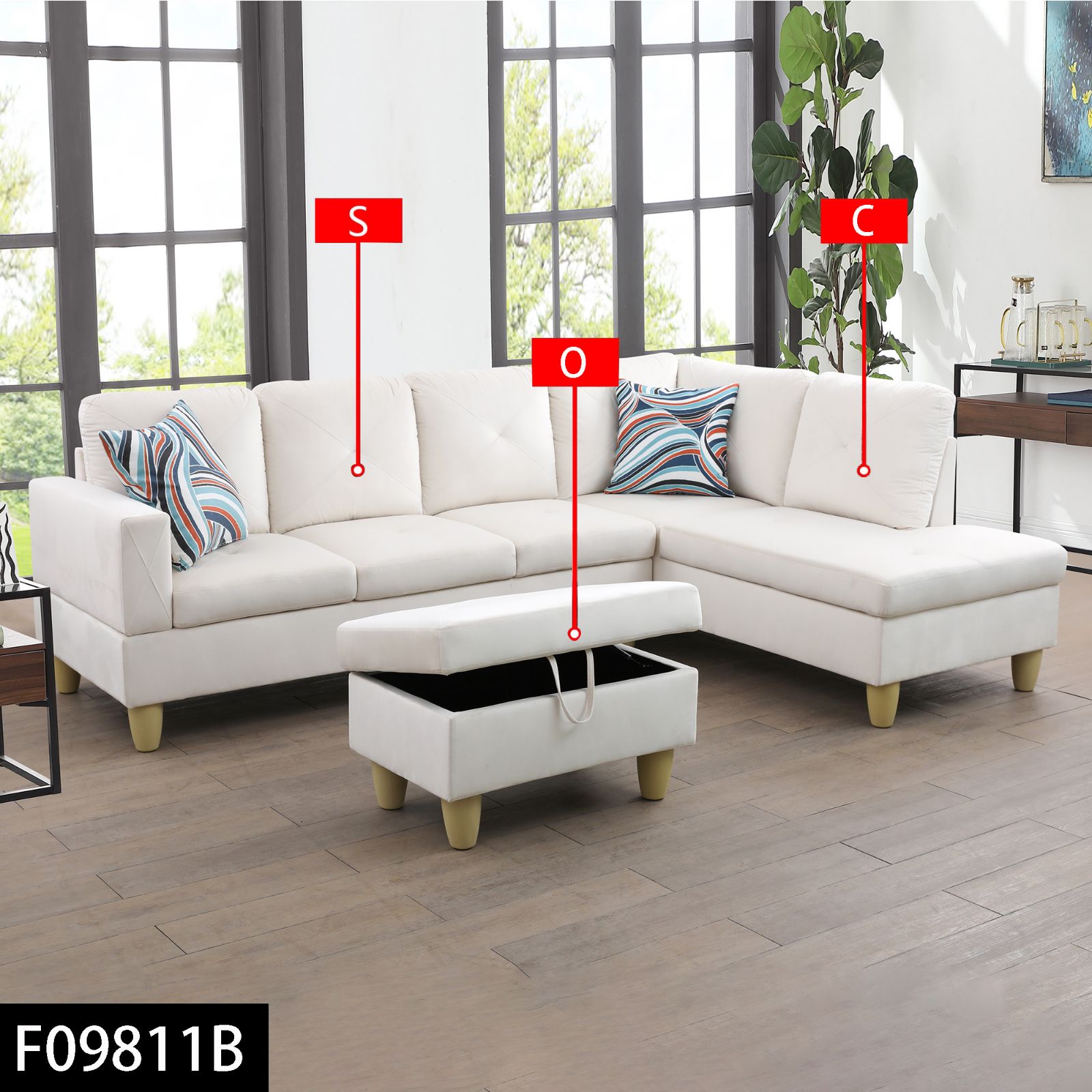 Pickup Only--66.5 White Flannel 3-Piece Living Room Sofa Set