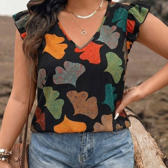 Women's Sleeveless Top With V-Neck And Ruffle Trim