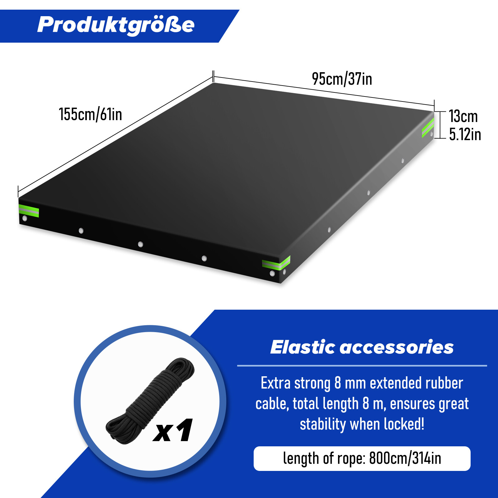 Black Trailer Cover With Bungee Cord 5'x3' - Heavy Duty Waterproof Tie Down 420D