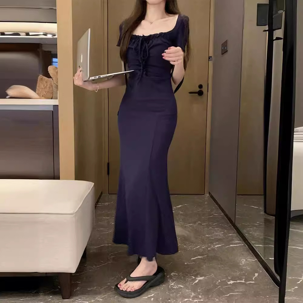 French-style Elegant Square-neck Dress For Women