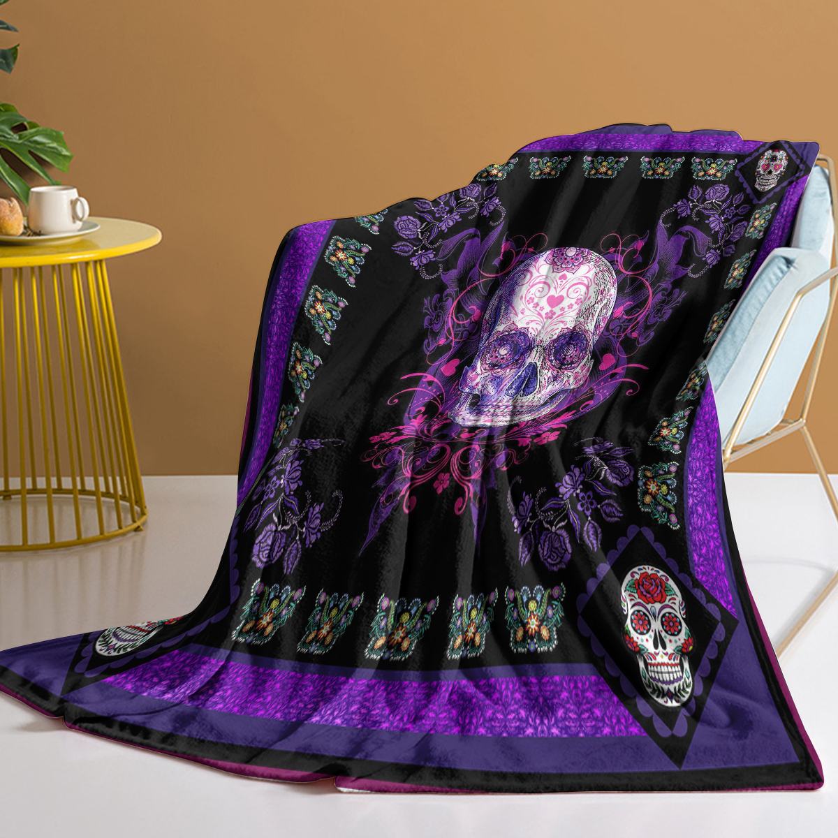 Skull Flannel Fleece Bed Blanket For Bedroom Sofa Couch Floral Purple Sugar Skull Throw Blanket Lightweight Cozy Plush Red Rose Skeleton Blanket