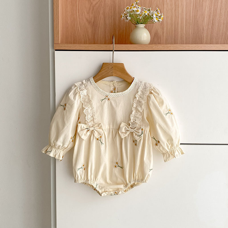 Baby Bodysuit With Long Sleeves Bow And Embroidery
