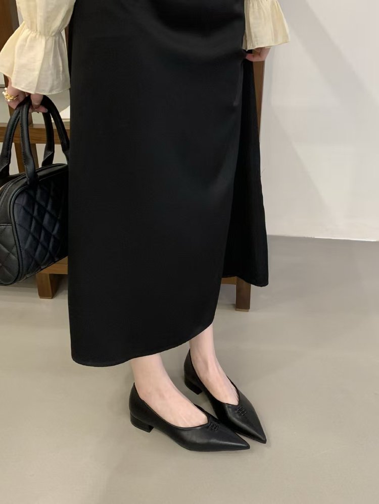 2026 New Spring & Autumn French Niche Design Pointed-Toe Chunky Low Heel Slip-On Pumps For Women, Versatile Elegant Office Style