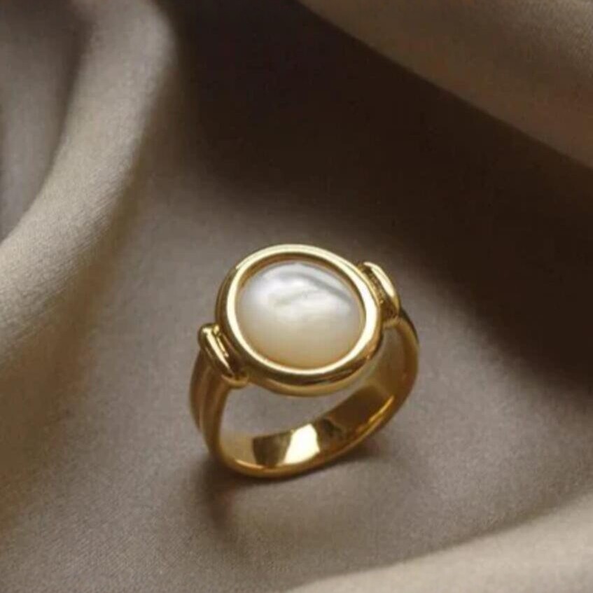 White Shell Electroplated Stainless Steel Ring Jewelry