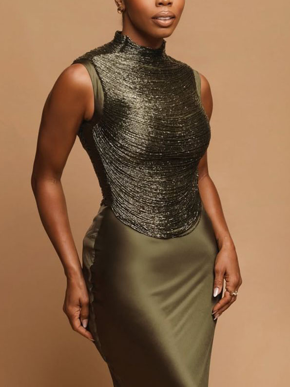 Elegant Sleeveless Tassel-trimmed Zippered Satin Fishtail Maxi Dress Set