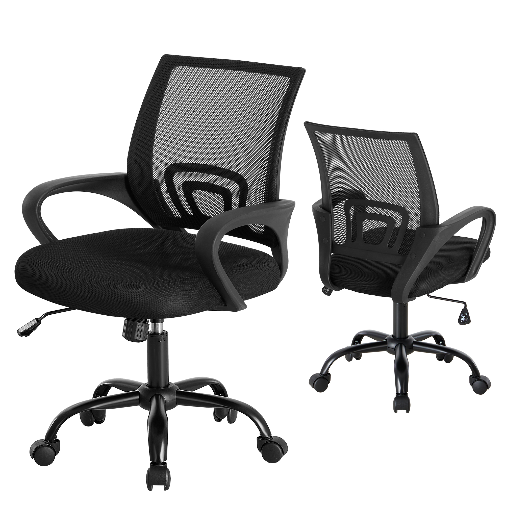 Office Desk And Chair - Equipped With Waist Support And Swivel Mode, Adjustable In Height, With Fixed Armrests, 360 Rotatable, 2 Sets